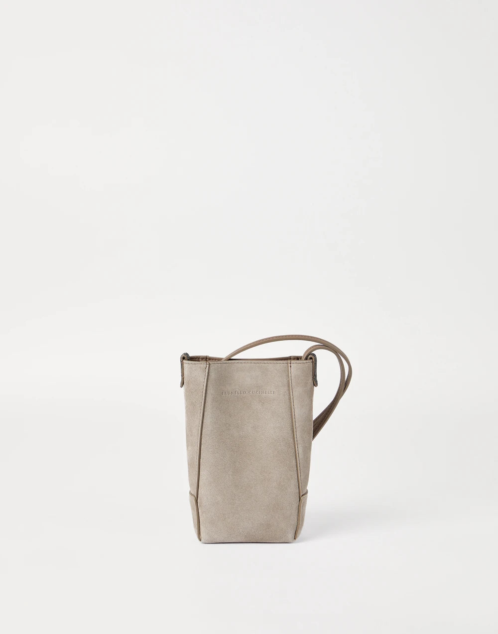 BRUNELLO CUCINELLI CROSSBODY DUO PHONE HOLDER IN SUEDE WITH MONILI