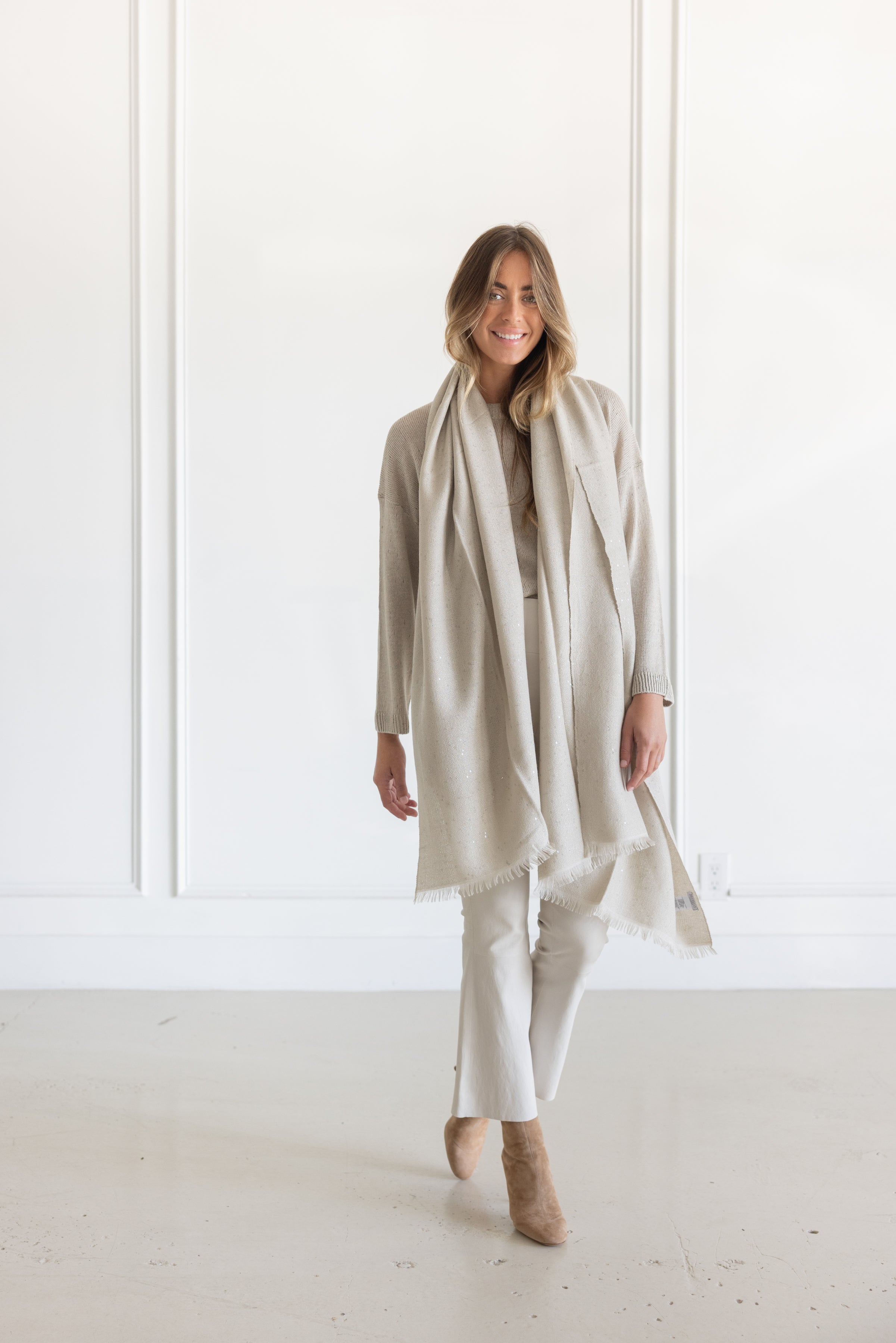 BRUNELLO CUCINELLI CASHMERE AND SILK DIAMOND YARN SCARF - STONE