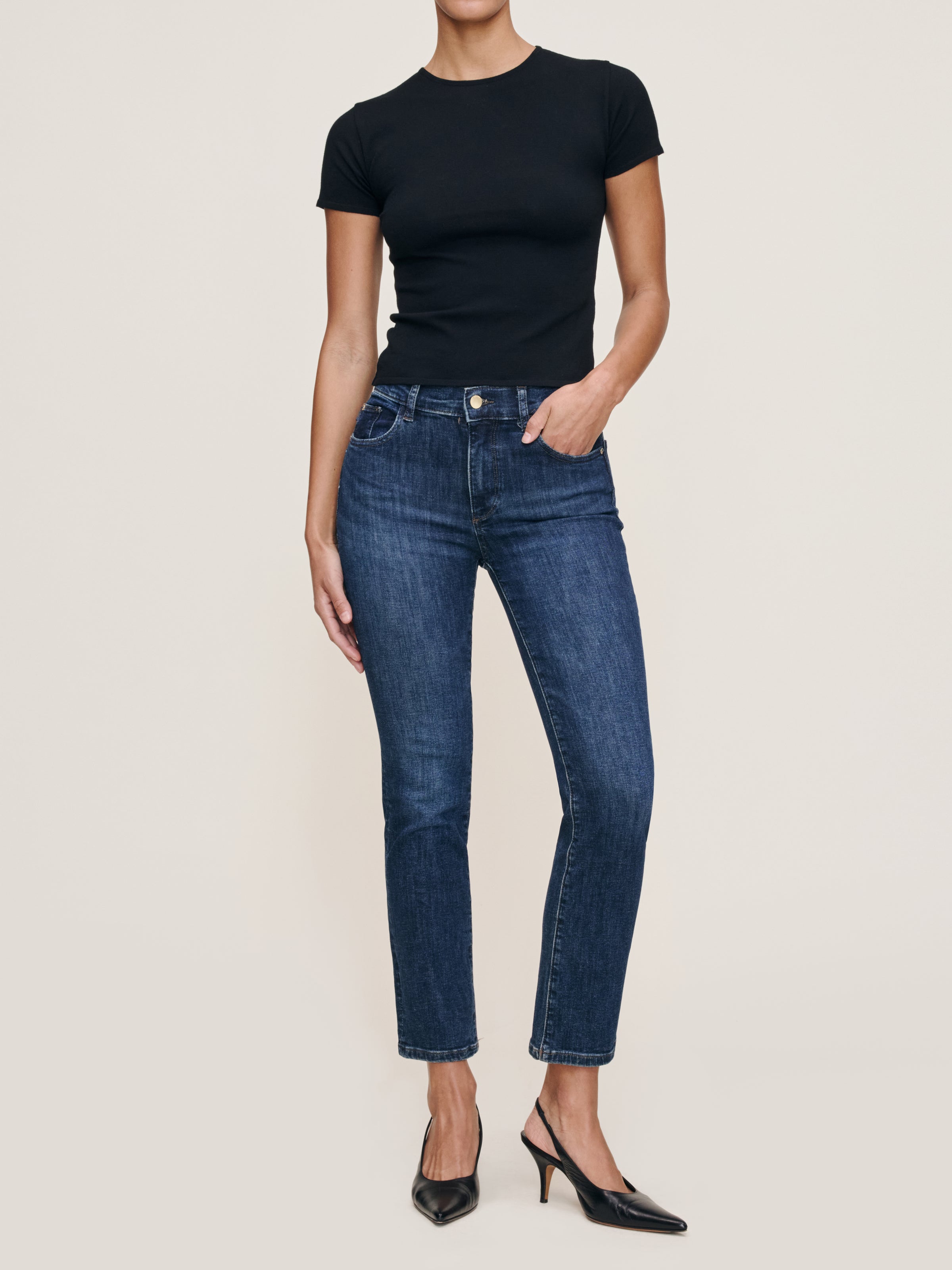 DL1961 MARA STRAIGHT MID RISE INSTASCULPT ANKLE INDIA INK
