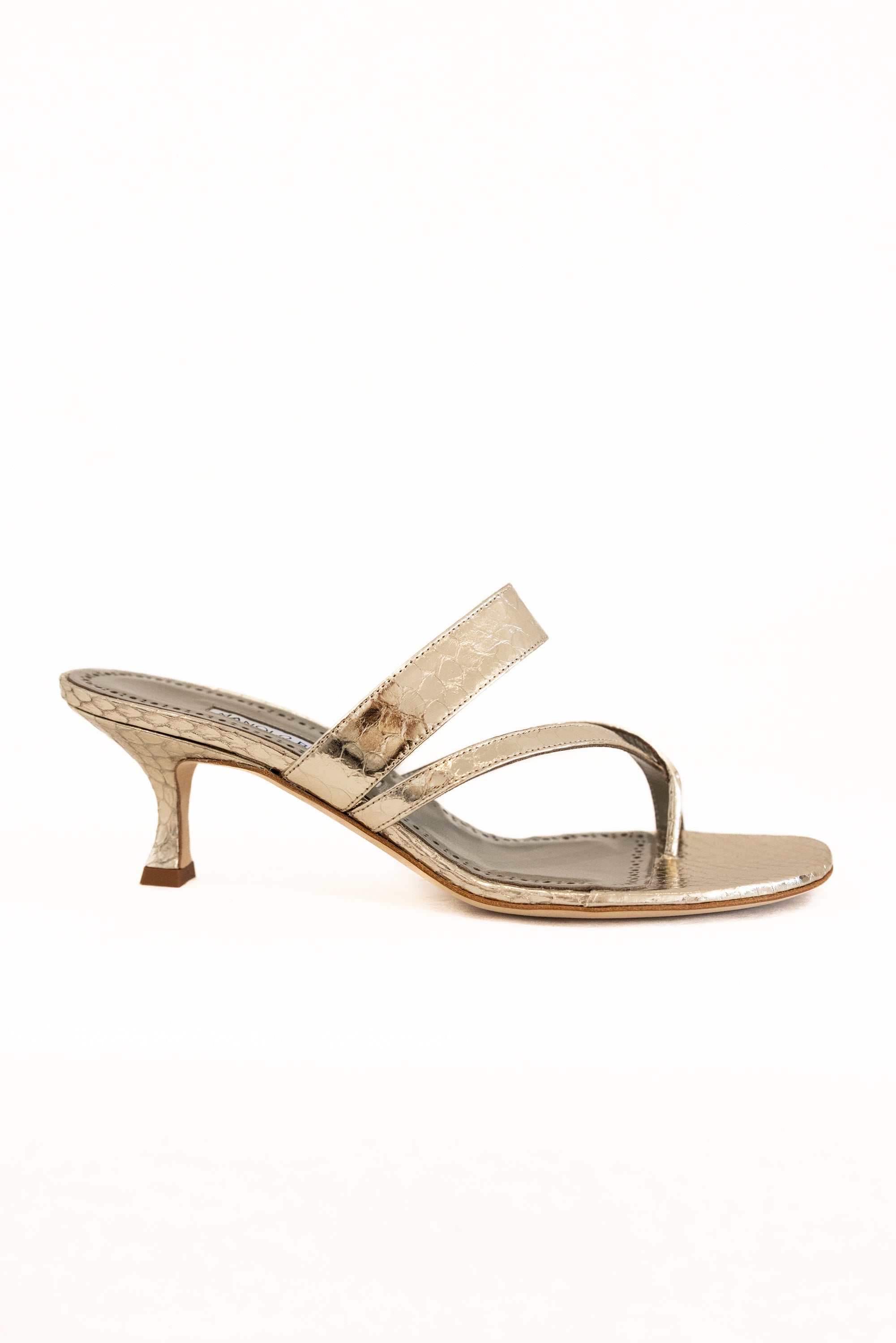 MANOLO BLAHNIK HARIBALMUFLAT 047/C SA 2265-10 #424-1999 GOLD