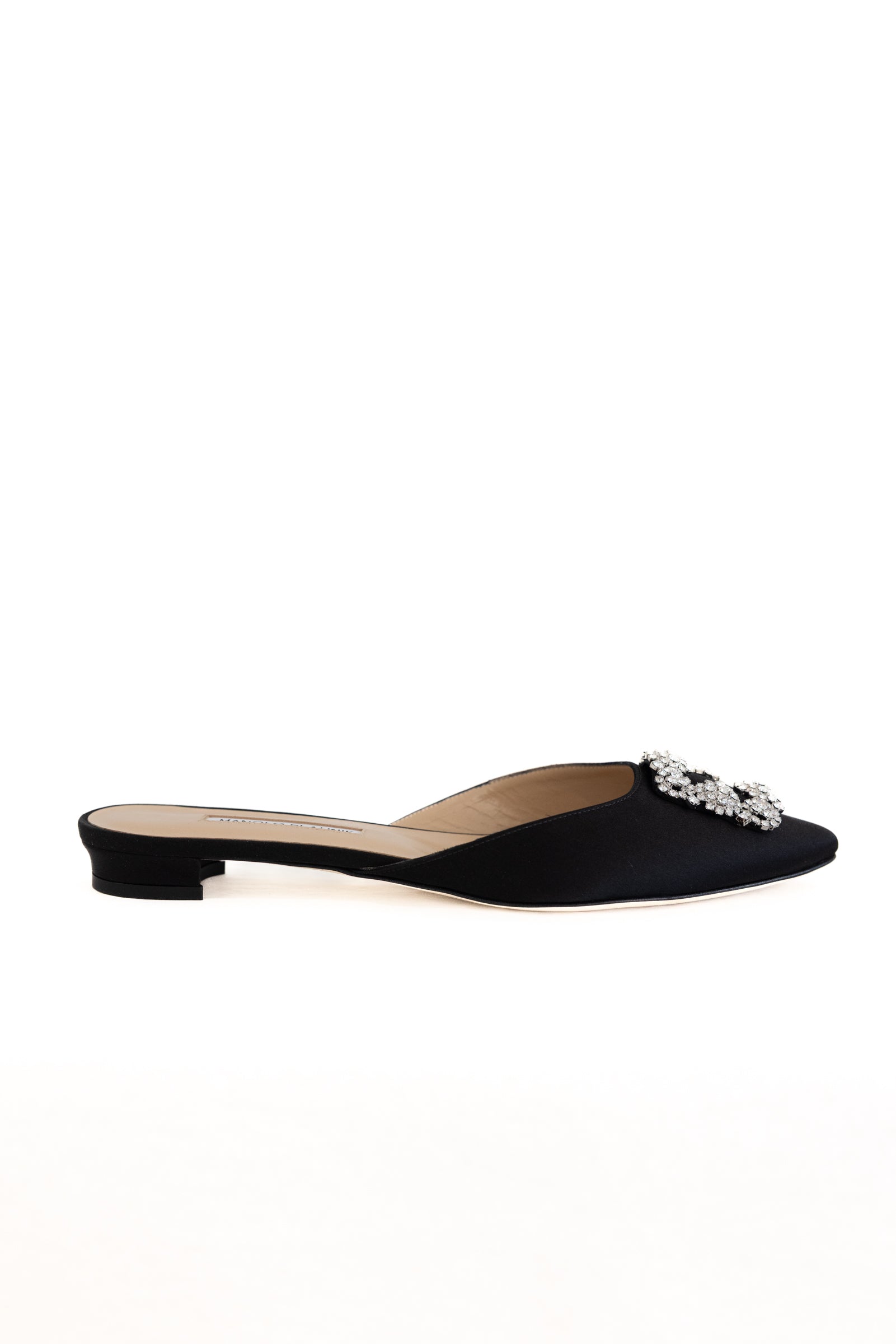 MANOLO BLAHNIK SATIN FLAT - BLACK