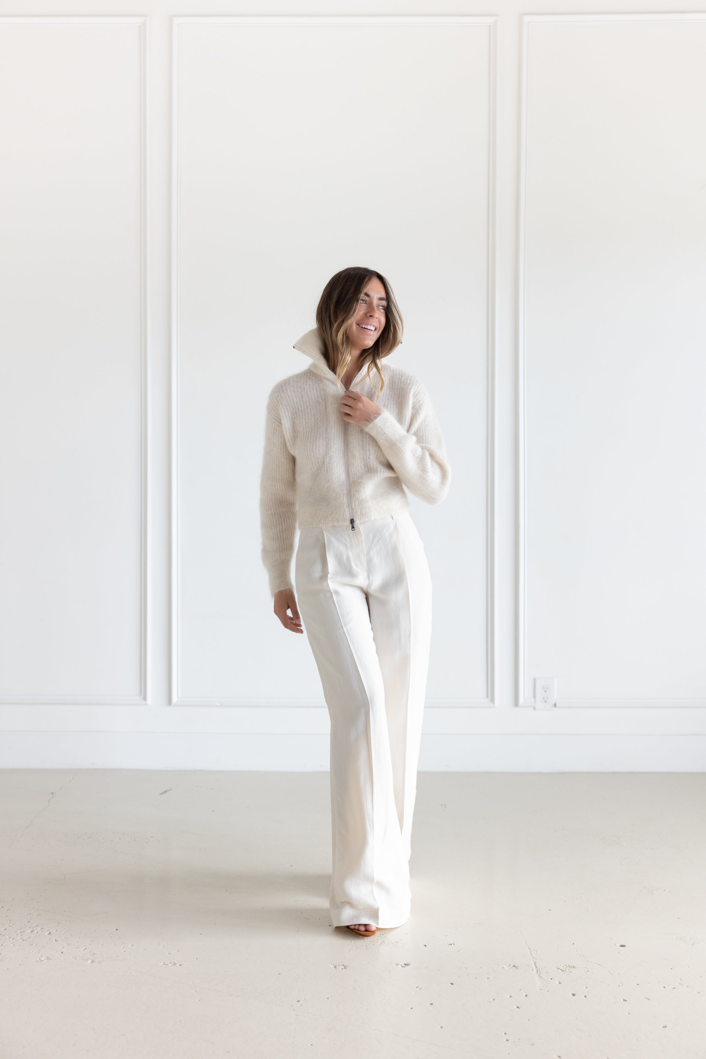 BRUNELLO CUCINELLI CASHMERE MOHAIR ZIP CARDIGAN - LIGHT BROWN/TAUPE