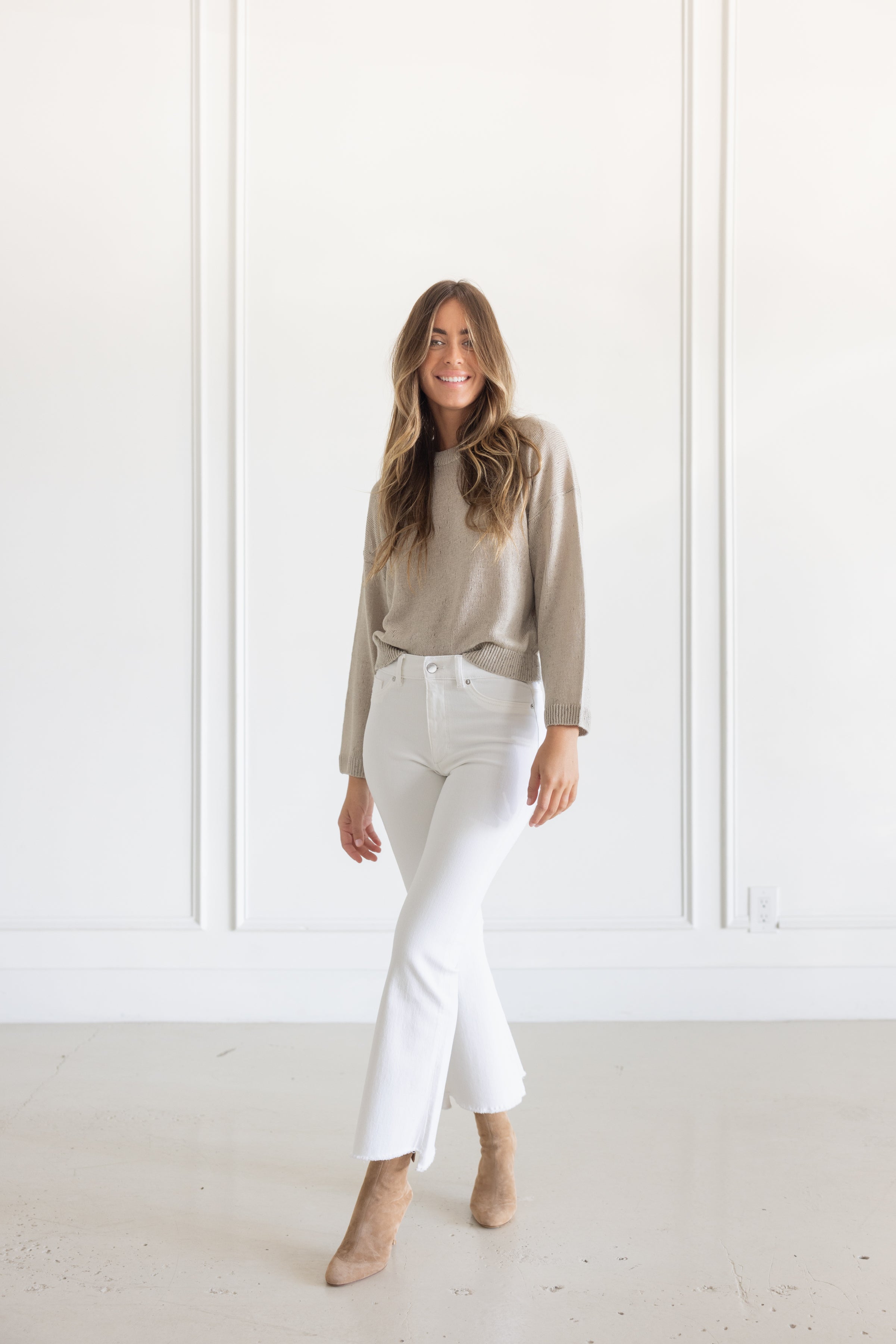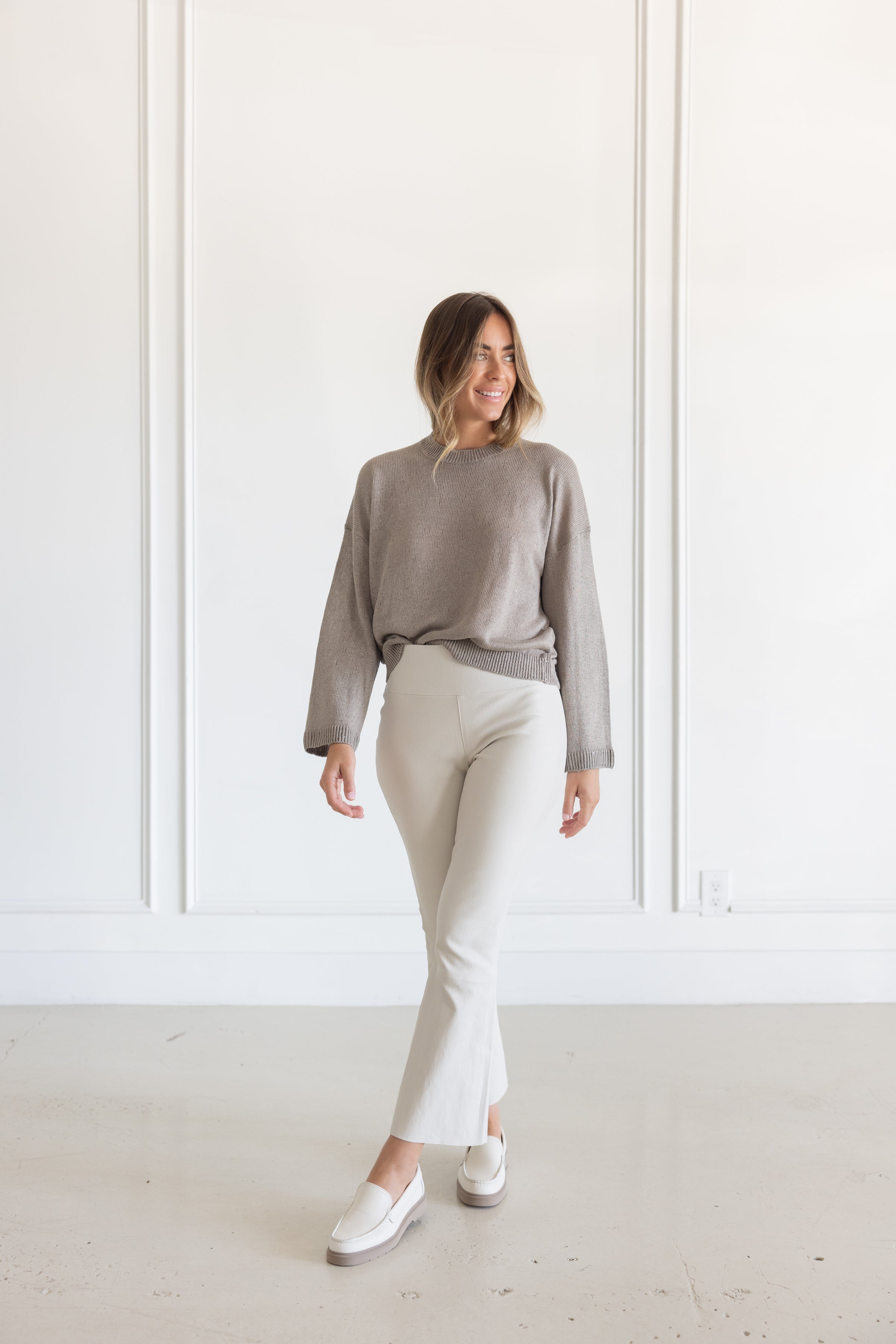 BRUNELLO CUCINELLI LINEN SILK PAILLETTE CREW NECK SWEATER - STONE
