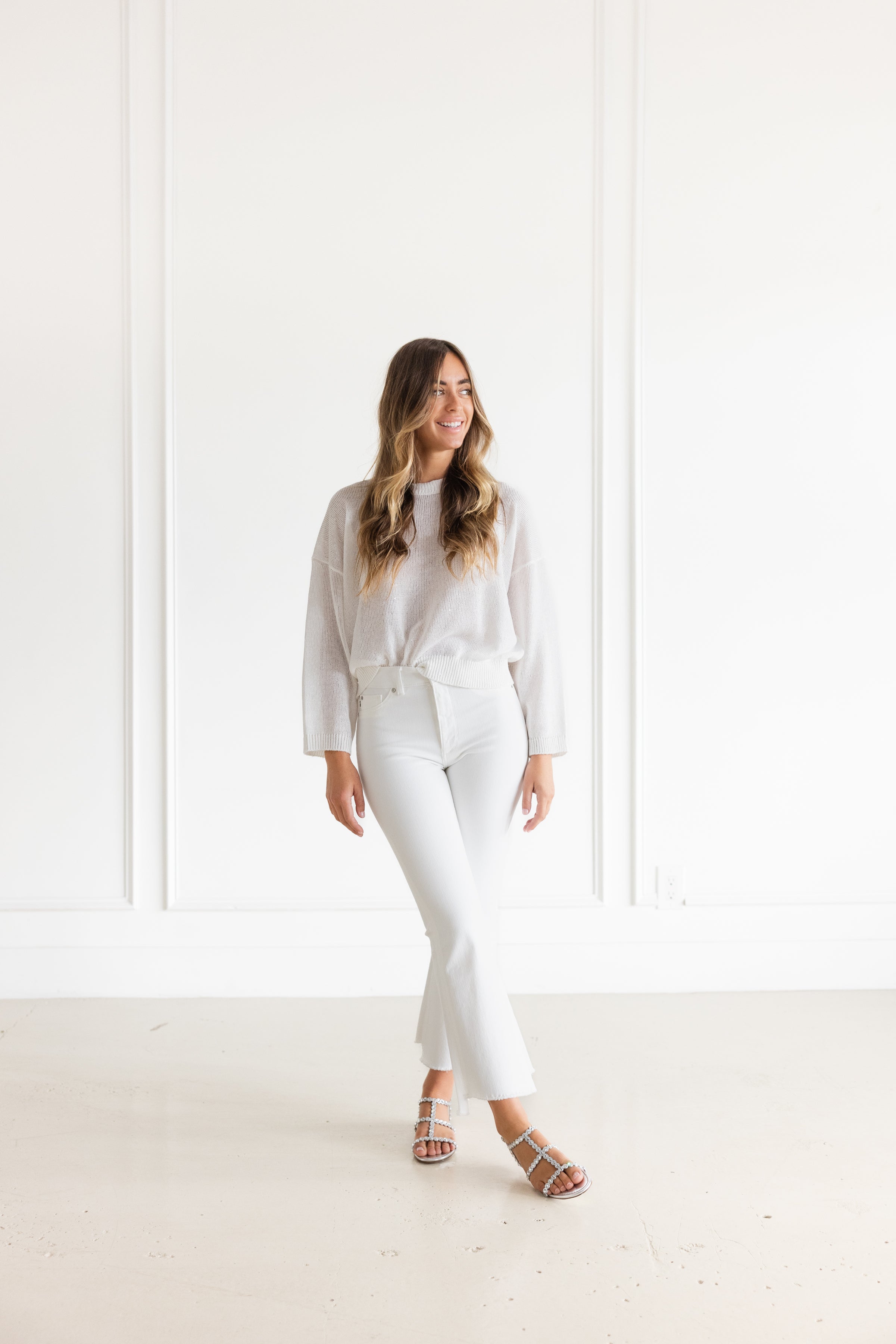 BRUNELLO CUCINELLI LINEN SILK PAILLETTE CREW NECK SWEATER - BEIGE FREDDO